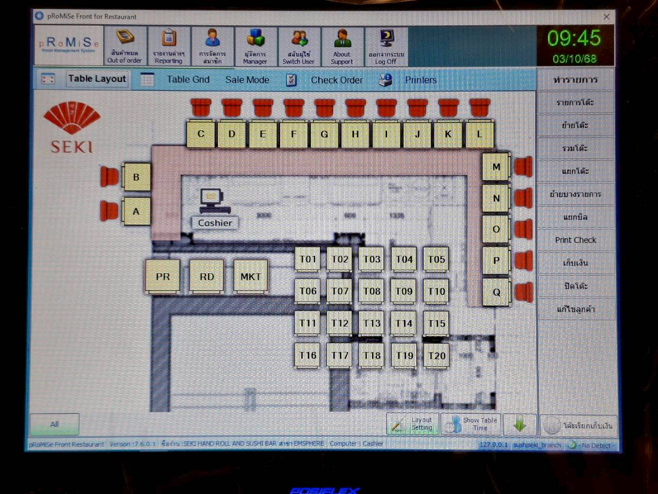 ขอขอบคุณ ร้าน ครัวเมืองเว้ Seki Hand Roll & Sushi Bar สาขา Emsphere ที่ได้ให้ความไว้วางใจใน Software pRoMiSe System โปรแกรมร้านอาหารที่ร้านอาหารชั้นนำเลือกใช้ ในการบริหารจัดการร้านของท่านให้มีประสิทธิภาพมากยิ่งขึ้น สามารถช่วยลดต้นทุน เพิ่มยอดขายได้มากขึ้น รองรับการเปิดสาขาใหม่ และหวังเป็นอย่างยิ่งว่า Software pRoMiSe System จะได้ดูแลและเป็นที่ปรึกษาในโอกาสต่อไป